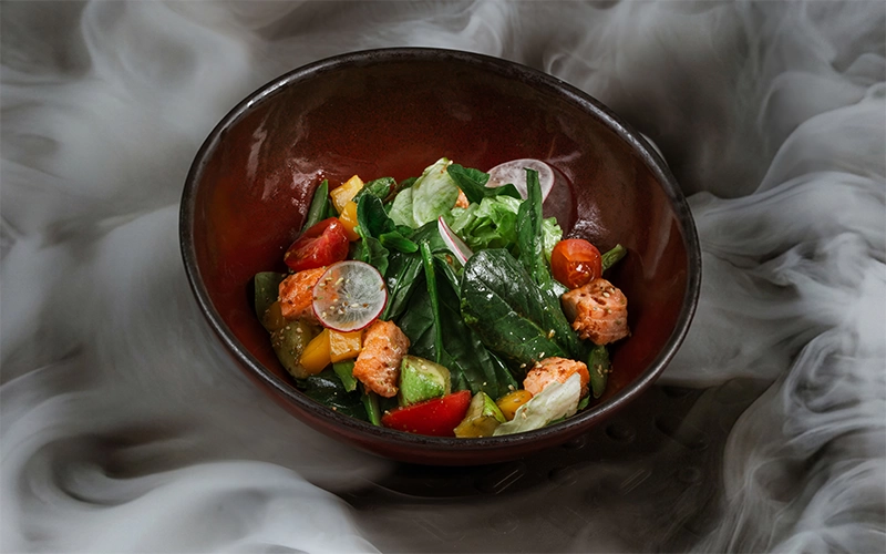 Салат с теплым лососем