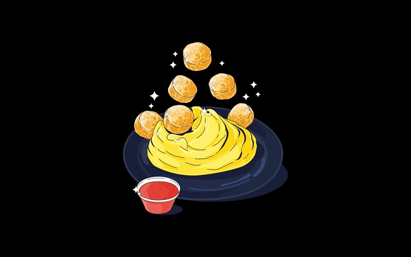 Картофельное пюре с запечеными куриными биточками. Подается с кетчупом