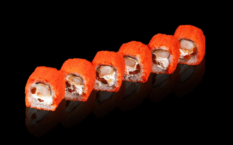 Урамаки с креветкой, огурцом и икрой летучей рыбы